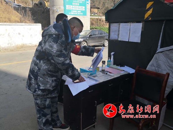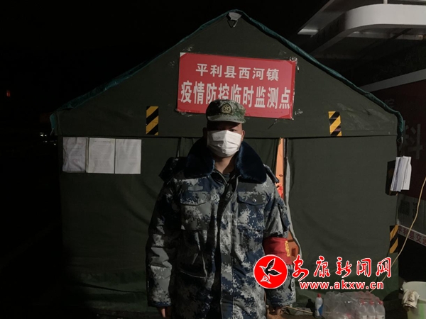 西坝村现役军人陈玉沈在大疫面前,立书请战,成为了一名疫情防控志愿者,被分派到平利西河镇段家河监测劝返点,负责值班值守,监测劝返。