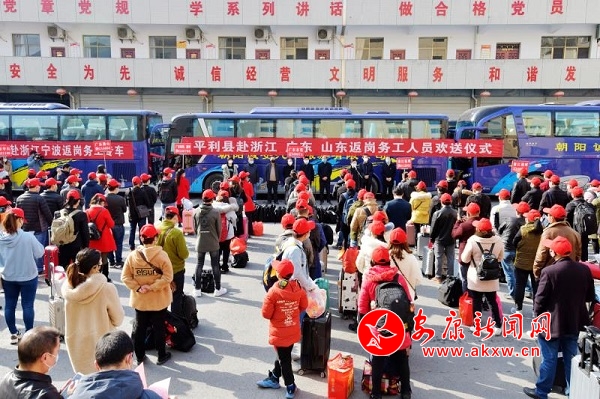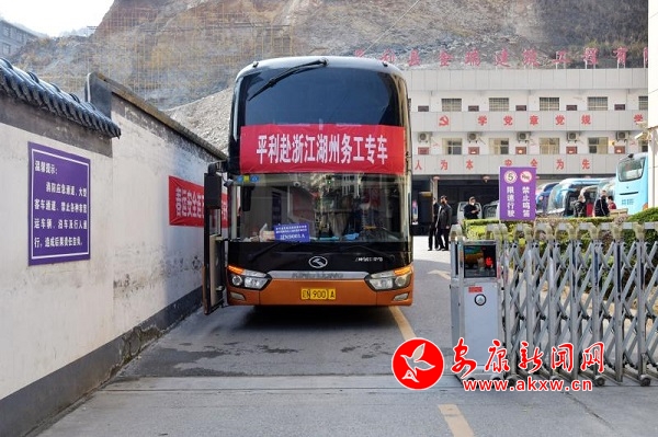 2月22日上午,平利县第二批221名外出返岗务工人员,在县政府的统一组织下,经过疫情筛查比对、体温检测、信息登记和出站安检等系列严格检查后,免费乘坐着11辆“务工专车”驶向广东、浙江、山东3省9市目的地。(通讯员 陈本利)hsQ安康新闻网