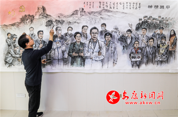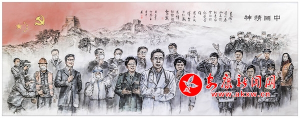 国画作品《中国精神》主要歌颂在“众志成城抗疫情”中的“逆行者”和各界英雄人士,反映抗击疫情斗争中涌现出来的感人形象和典型事件。
