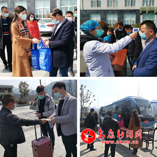 (出发前,该镇党委政府组织医务人员对务工人员和车辆进行了体温监测、消毒消杀,并统一发放了防护口罩和生活物资,切实保证了输送人员的健康和安全。)