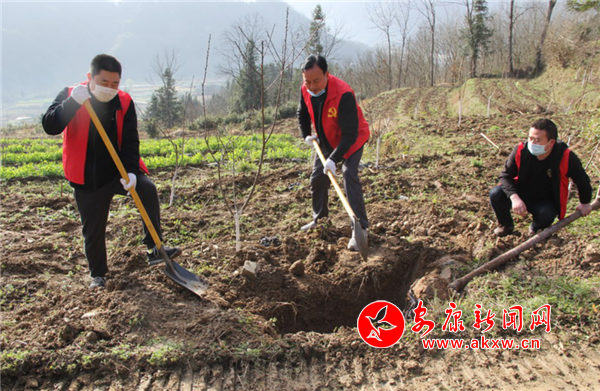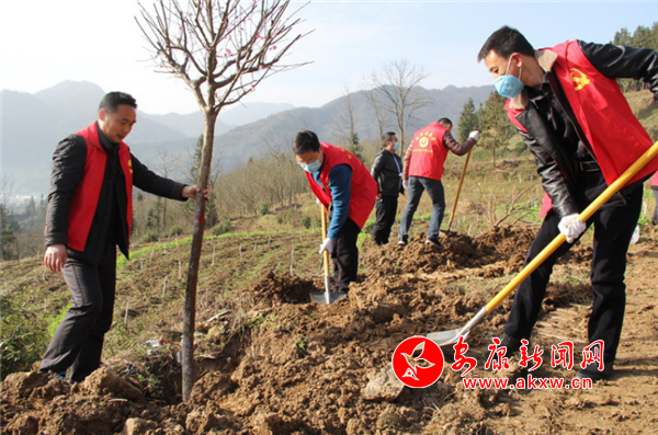 植树现场,干部们分兵布阵,二至三人组成一组,按照统一规划地块,有序地展开植树活动。大家相互协作,有的挥锹铲土,有的扶苗填坑,有的浇水灌溉、有的搬运苗木,撸起袖子甩开膀子,将一株株苗木精心栽下,并用双脚踩实固定,一派热火朝天的忙碌景象。“绿水青山就是金山银山”,平利县纪检监察干部以实际行动,为打造中国最美乡村“增绿添树”。