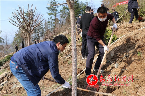 栽树现场,“为青山增绿,为党旗增彩”,“共建共享山水绿,打造幸福万福山”等大红标语在阳光的照耀下格外夺目,百余名党员干部干劲儿十足,扶苗、挥锹、铲土、踩实……个个汗流浃背,热烈而感人的劳动场景拨动着每一个人的心弦,灿烂的笑容挂在每一个人的脸上。经过近2个多小时的辛勤劳动,200余棵新树苗迎着春风昂然挺立,让原本荒芜的山坡焕然一新。