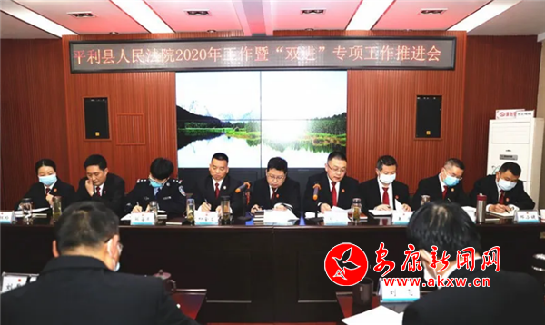 本网讯 3月30日,平利法院召开2020年工作暨“双进”专项工作推进会,贯彻落实各级政法工作会议和省、市法院工作会议精神,回顾总结2019年工作,全面安排2020年工作。会议由党组副书记、副院长汪道鹏主持。全体干警参会。