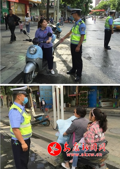活动中,民警首先向广大摩托车、电动自行车驾驶员介绍了开展“一盔一带”安全守护行动的重要意义,民警以身示教,讲授和培训安全头盔正确佩戴方式,并结合当前辖区摩托车、电动车常见交通违法行为向围观群众宣传普及佩戴头盔的重要性。随后,民警前往东一路执勤点开展摩托车、电动车不戴头盔现场整治,对发现的骑行摩托车、电动摩托车不佩戴头盔违法行为进行现场查处和批评教育,告知交通参与者佩戴安全头盔的重要性,促使交通参与者消除麻痹大意思想,牢固树立佩戴安全头盔的理念。