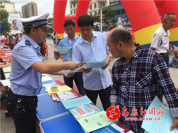 在活动现场,宣传民警将精心制作的交通安全宣传展板、宣传横幅摆放在宣传展示点,吸引了众多群众驻足观看。民警就交通管理、交通违法和车驾管业务等问题向群众进行了解答,耐心讲解了无证驾驶、酒后驾驶、骑摩托车不佩戴安全头盔、开车不系安全带、驾驶超标电动车等道路交通违法行为的危害性。并向群众发放交通安全宣传资料,有效增强了群众的交通安全意识,文明交通意识和法制意识。