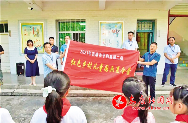 本网讯(通讯员 王韬)7月12日,我市第二届红色乡村儿童国画夏令营在平利县老县镇中心小学开营。夏令营总指挥、中国版画家协会会员、安康儿童画教育专家宋安平主持开营仪式,宋安平向与会人员介绍了首届红色乡村儿童国画夏令营取得的成果后,夏令营艺术总监、平利县文联主席王建春为夏令营授旗,夏令营副总指挥、平利县老县镇中心小学副校长胡洪成接旗并将营旗转授夏令营学员班长,仪式最后,平利县教体科技局代表吴文斌宣布夏令营开营。