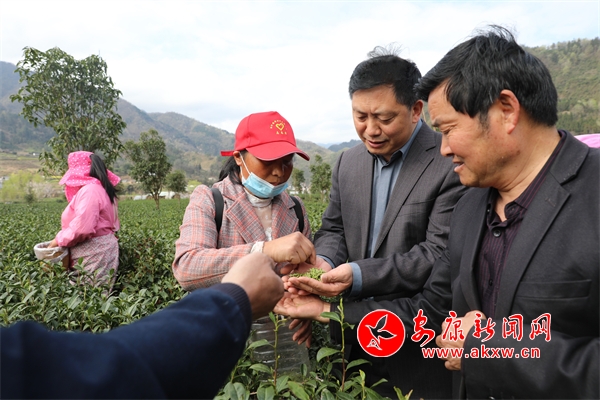 “我们要用双手采春茶,要采全芽头,一芽或者一芽一叶,这样才能保证春茶质量。”女娲翠峰有限公司负责人李从平正对前来采摘茶叶的村民进行技术指导。