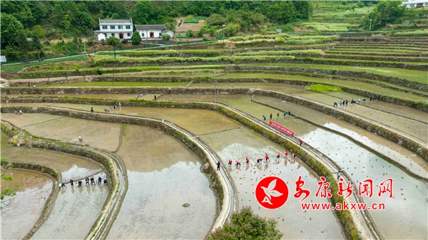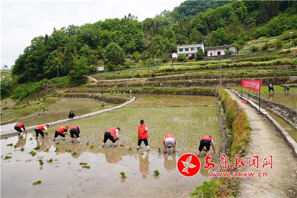 此次活动共组织22名党员干部,36名群众参与,大家挽起裤腿6人一小组、8人一小队,能手带新手、干部带群众,相互交流拔苗、淘泥、扎捆、插秧技巧等,不一会儿绿油油的秧苗就在田里排成了整整齐齐的队列。