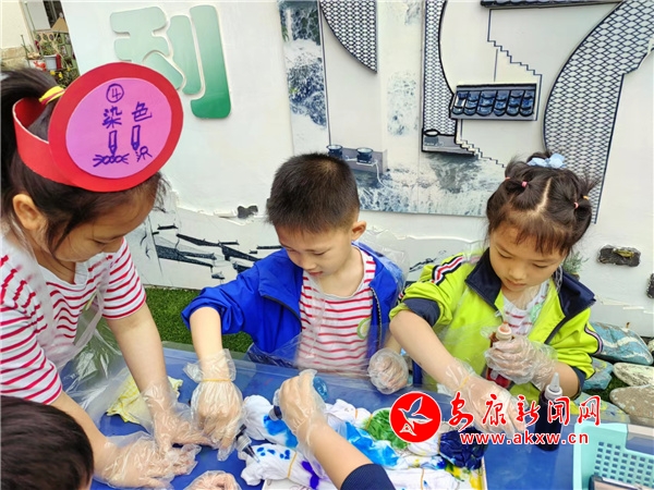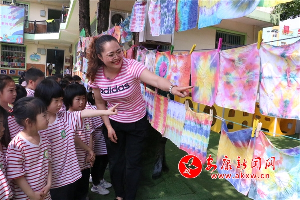 为了让孩子们传承传统制作工艺,在亲身体验中感受扎染的图案美、色彩美和形式美,培养其动手能力和创意表现力,5月26日,平利县幼儿园开展了庆“六一”系列活动中的重要一项——“缤纷扎染 布里生画”手工扎染活动。