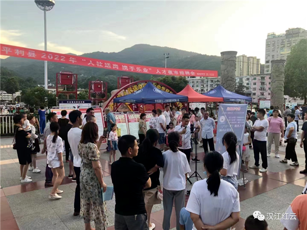 长安河畔彩旗飞,女娲广场人如潮。6月28日,平利女娲广场举行了一场别开生面的人才招聘会。来自全县各镇村的求职村民们,呼前唤后,相互推介,招聘台前一片繁忙。
