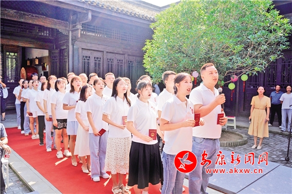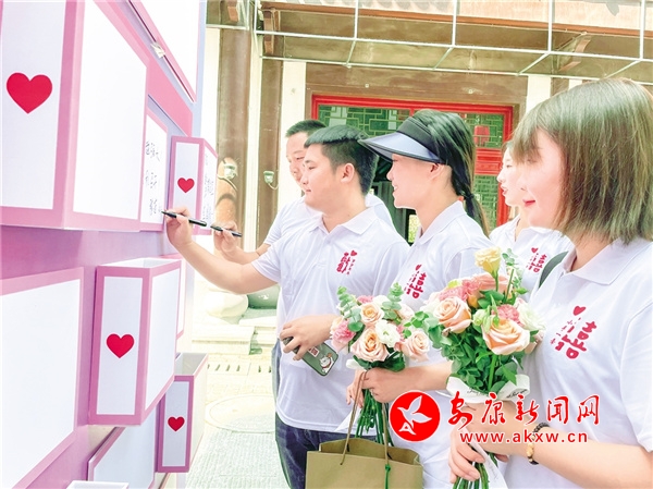 “和气致祥”“真爱长春”“和鸣盛世”等书法作品为新人送上美好祝愿,以此倡导文明、健康、理性的婚恋观和家庭观,引导新人们感悟铭记婚姻缔结之神圣、婚姻家庭之责任、婚姻和谐之美好,树立社会新风尚。“穿针乞巧”“晒书晒才”“编中国结”……一对对新人积极踊跃、各显神通。手执五色丝线,同时连续穿过五孔针,比一比谁能最先将线快速全部穿过针孔,期待“得巧”;巧手编织中国结,传承红色中国情,七夕飞花与诗,情意绵绵,深远悠长。