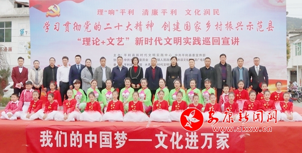 理论+文艺“飞入寻常百姓家”。阳春三月,“学习宣传贯彻党的二十大精神 奋力创建国家乡村振兴示范县”理论+文艺新时代文明实践巡回宣讲启动仪式在大贵镇后湾村成功举行,活动现场,《美丽中国》欢快舞动,《茶香春早》悦耳动听,《乡村处处话振兴》娓娓道来,《沁园春·雪》雄迈豪放,理论宣讲贯穿其中,一场视听盛宴下来,群众对发展的信心、对理论、政策的学习热情更加高涨。将党的二十大精神精准地转化为接地气的文艺节目,让群众听得清、听得懂、听得进、用得上,收获满满。