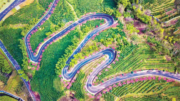 沿着茶山步道拾级而上,茶农采青的竹篓与游人拍照的纱巾在梯田间次第闪现。粉白相间的梅花如云絮般缀满枝头,风过处,花瓣簌簌落入茶丛,为嫩绿的新芽染上淡淡馨香。远处黛瓦白墙的徽派民居与近处起伏的茶垄构成天然画框,无人机视角下,蜿蜒的茶道如同玉带缠绕山腰,将红枫、樱花、梅林串成斑斓的珠链。