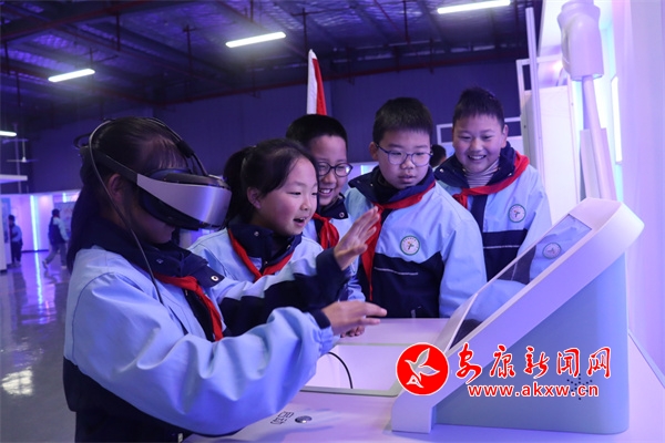 在科技馆内,学生们在讲解员的引导下,开启了“沉浸式”科学之旅,近距离接触机器人、VR、人工智能等前沿科技展品。智能机器人灵巧的舞蹈动作引得孩子们阵阵欢呼;VR体验区里,学生们戴上设备“穿越”到宇宙星空,感受科技的神奇魅力;学生们还通过参观“节水之旅 我们在行动”等主题板块展品,亲手操作实验设备,感受到了科技对生活的深刻影响。走进气象站,学生们跟随气象工作人员,参观了气象科普长廊,阅览二十四节气对生产生活的影响。在气象观测场,近距离观察风向风速传感器、天气现象仪器等设备。