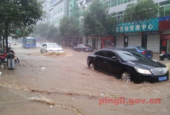 6月19日13时30分起,平利城关境内突降大到暴雨,1小时降雨量超过50毫米,2小时降雨量达到76毫米,为近50年来平利最大短时暴雨。由于暴雨来得突然,降雨量过快,导……