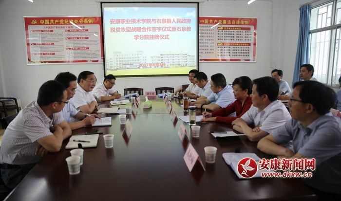 周耀宜介绍了石泉县情和社会经济发展情况,他指出,我县将借助安康职业技术学院雄厚的职教资源和高校优势,办强我县职教中心、做大我县职业教育、提高我县农民增收致富能力、增强我县教育脱贫工作实效。希望安康职业技术学院充分发挥优势,为我县在急需专业技能人才培养、学历教育和成人教育提升、职业资格鉴定、提升职教办学水平、教育精准脱贫等方面提供帮助支持。