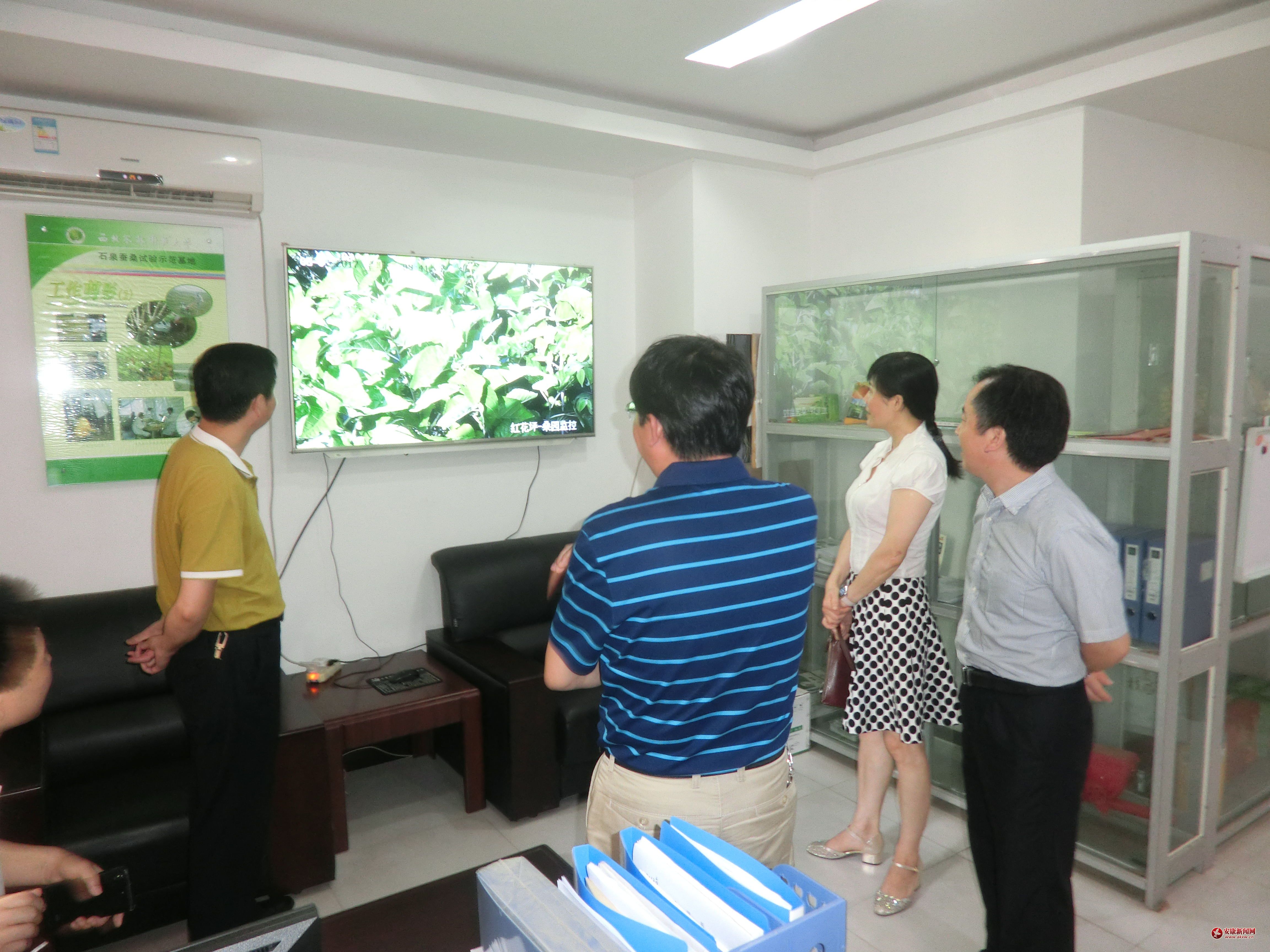 在远程网络管理监控服务智能系统操控室,周部长一行领导观看了西农大石泉蚕桑试验示范基地肖乃康教授现场演示的小蚕共育室的高清监控,看见第二批蚕子一动不动地正在睡四眠,通过无线温湿度传感器看见蚕室里的实时温度、湿度和近一段时期蚕室里全天候温度、湿度的变化情况,蚕桑中心主任韩燕明介绍说:通过这套远程网络管理监控服务智能系统,就可以对4个基地的小蚕共育实时监控,遇到蚕室温度、湿度超标随时通知共育人员采取技术措施调整到标准范围内,通过安装在室外的高清监控摄像头,可以360°无死角观察桑园桑叶的生长、病虫害发生、桑园上肥、除草等情况,如果发现桑园病虫害等异常情况随时通知相关人员采取措施,避免桑园遭受损害。