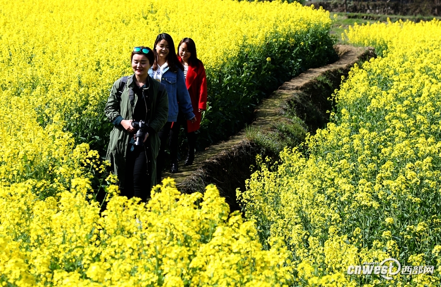 游客行走在油菜花田间