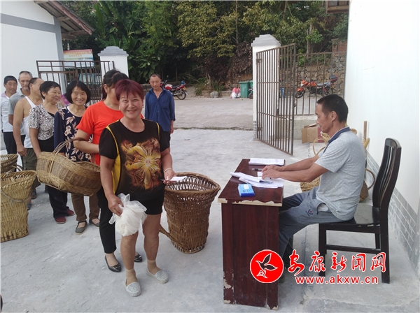 一大早,迎丰镇红花坪村蚕桑合作社的小蚕共育技术员们便将秋季首批450张小蚕共育蚕种装车,对应蚕农预定的数目,挨家挨户送蚕种。家离合作社近的农户,采摘完桑叶,就早早过来排队等候蚕种发放。