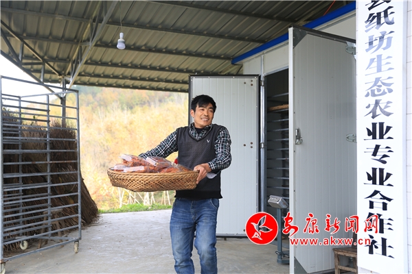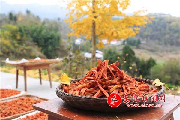 安康新闻网讯(通讯员 熊秘 李思纯)11月11日,立冬已过,石泉县城关镇纸坊村还是一片斑斓的秋景。家住半山腰的产业能人王铣斌今年在村里牵头成立了生态农业合作社,6月挂牌后,购置了烘干设备,收了一夏黄花菜。10月初,地里的红薯开始开挖,王铣斌以1元1斤的价格收购全村的红薯,利用烘干设备加工红薯干。至11月初,王铣斌的合作社收购贫困户红薯3000余斤,已通过线上线下销售成品红薯干400余斤。