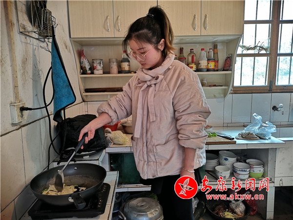 “初中那会,家里煮饭用土灶,我最讨厌做饭了。每天都要泥灶台烧柴草 ,一日三餐烟熏火燎。冬天还强点,能取暖,但是夏天,围着灶沿转的滋味就不好受了,炒两个菜,脸烤得通红。”成萌一边说着往事一边把炒好的菜装进盘子。