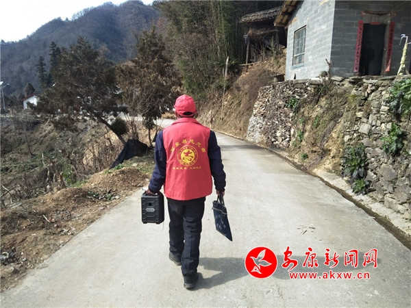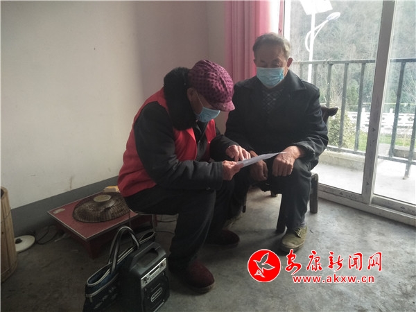 用实际行动感党恩,李德国从大年初三起加入抗疫队伍,和干部们一起冲锋在疫情防控第一线。在宣传走访期间,李德国带头示范,主动带上口罩,每天在村上巡逻一圈,拿上宣传单页上门发放。