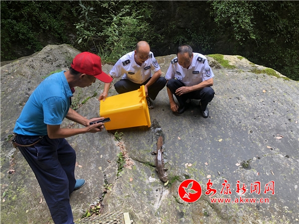 “为了保护渔业资源和水生态环境,我们今天把这条娃娃鱼放归到喜河镇三星潭流域(雁山瀑布景区安全水域)。这里属于保护区,且原生态自然环境非常适宜娃娃鱼生长。”石泉县农业综合执法大队干部刘晨说道。