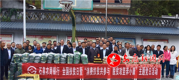 活动现场举行了“扶贫帮困献爱心 捐资助学暖人心”帮扶捐赠仪式。“扶贫日”募捐仪式上,石泉农商银行对4名贫困户大学生现场捐资8000元。