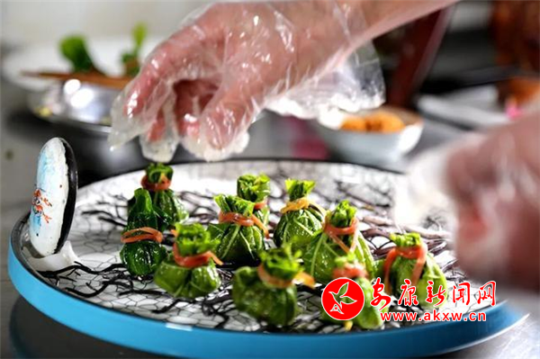 在景区内有一种特色蚕桑宴——“炸桑叶、凉拌桑叶、桑叶丸子汤、桑叶浆水面、桑叶饺子馒头、桑叶凉粉、桑葚甜酒、炸蚕蛹、桑叶炒鸡蛋、桑叶茶、桑葚酒、桑园辣子鸡……”几十道“桑叶”主题特色美食让游客们垂涎欲滴。一盘炸桑叶10来片,能卖到18元,平均一片就达到近两元,其他菜品单价也是28-88元之间不等,与1200斤桑叶喂养一张蚕卖2500元的好价钱相比较,经济效益要高几百倍。