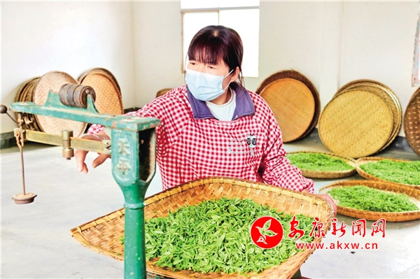 清明时节,熨斗镇先联村的灵雀山茶园迎来了春茶采摘的黄金期。连片的茶园冒出了新绿,整齐的茶垅间,采茶人若隐若现。明前茶采摘期短,用工量大,工钱按照采摘的茶叶量每天现结,许多群众都来到茶园务工。