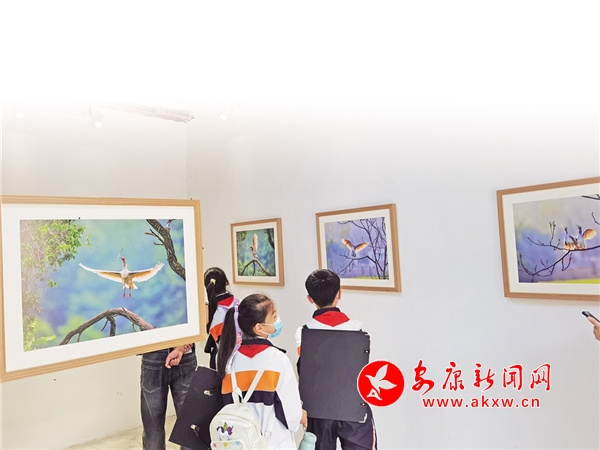 学生观看朱鹮摄影展
