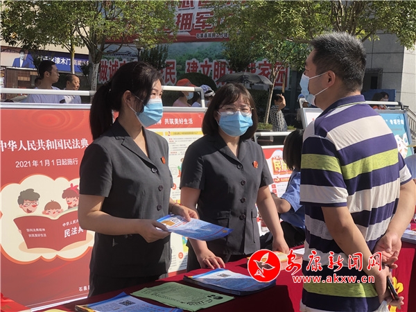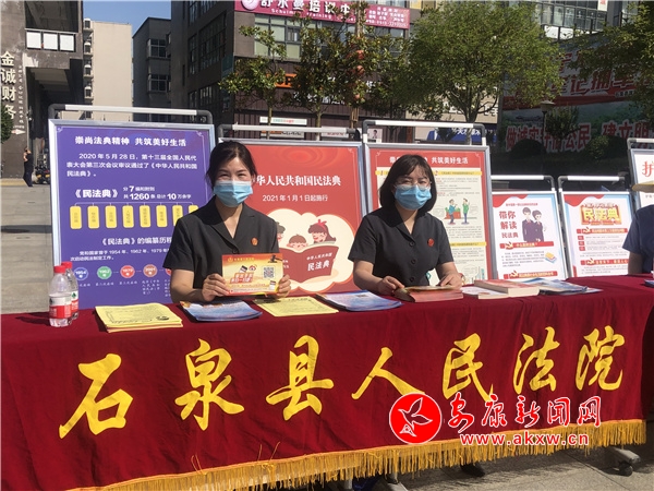 本次活动主题为“典”亮生活 法润石泉,以增强广大群众对《民法典》的认识为目的,推动《民法典》走到群众身边,走进群众生活。通过悬挂横幅、摆放宣传展板、发放宣传手册、现场提供法律咨询等形式向群众进行普法宣传。