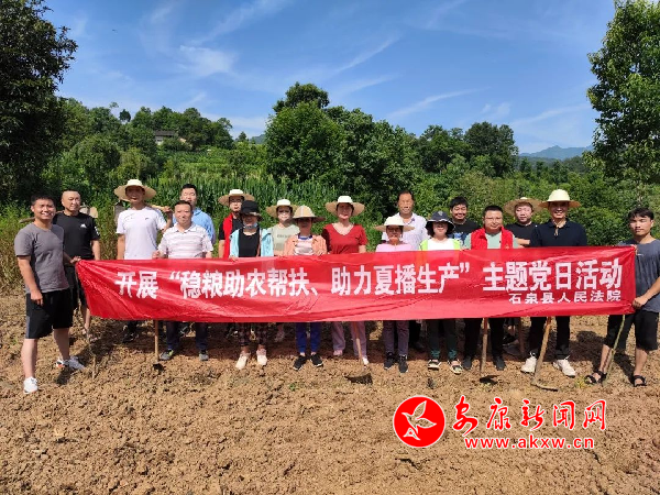 近日,石泉法院组织机关党员干警前往池河镇柏安村开展“稳粮助农帮扶、助力夏播生产”主题党日活动,深化开展“我为粮食助把力”行动,高标准完成包联村玉米大豆套种任务,确保粮食增产、农户增收,以实际行动践行共产党员的初心使命,切实帮助村民解决农忙时节用工难问题。