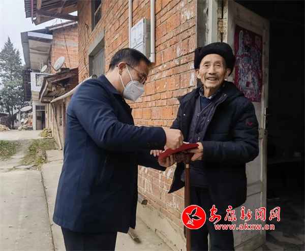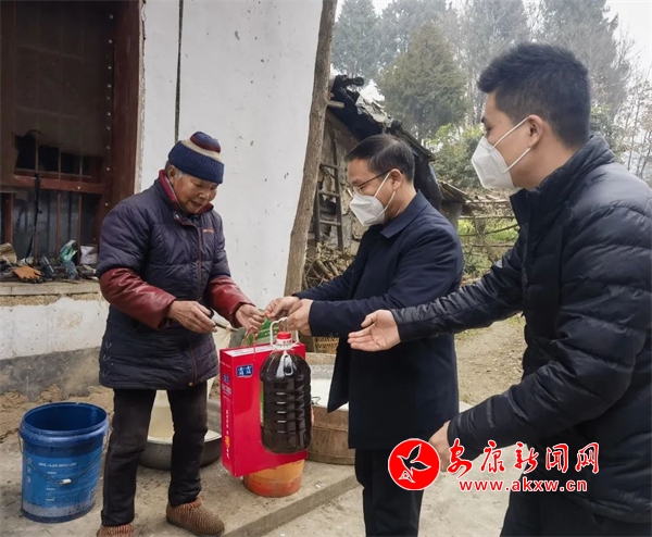 1月12日,石泉法院到包联的池河镇柏安村走访慰问老党员、脱贫群众及村工作队员。(通讯员 夏得垚 )