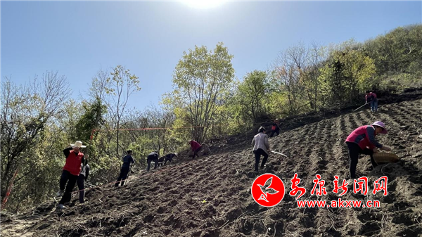 “你这个间距有点窄,点完玉米后,中间要1.8米,这样才能为黄豆提供良好的通风和光照环境。”青泥涧村产业技术指导员正在为三组村民指导大豆玉米复合种植技术。