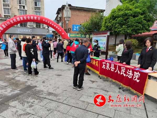 本网讯(通讯员 郭程)在第八个全民国家安全教育日来临之际,石泉法院组织法官干警在樱花广场开展国家安全教育日普法宣传活动,树牢总体国家安全观,增强全民国家安全意识和素养,形成全民共同维护国家安全的良好法治氛围。