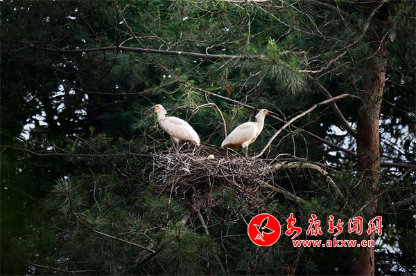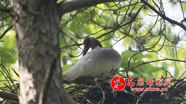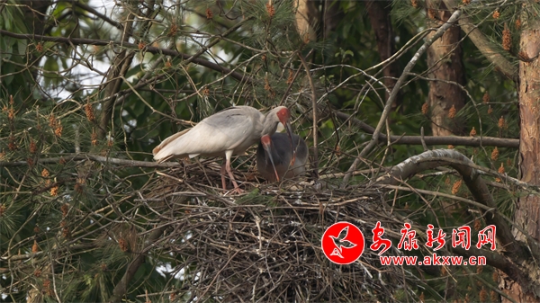 4月中旬,陕西石泉城关镇丝银坝村草池湾的朱鹮宝宝要出生啦!朱鹮爸爸和朱鹮妈妈一边孵化宝宝,一边扩建装修巢穴。它们还在巢穴里铺上柔软的干草、羽毛,等待宝宝出生。