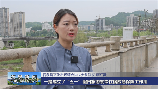 石泉县文化市场综合执法大队队长 廖红霞:为做好假日旅游工作,一是成立了“五一”假日旅游餐饮住宿应急保障工作组,对全县宾馆酒店民宿等住宿场所,接待能力情况进行了全面的摸底,同时把党校、职中等学校作为住宿应急保障场所,准备了一定数量的帐篷被褥等应急物资。二是从2月29号晚上开始,全县客流量过多,住宿出现了供不应求的情况,我们专门组建了假日旅游餐饮住宿保障微信工作群,积极通过各种渠道实时收集住宿接待及游客需求情况,动态发布剩余房源,针对游客需求及时回应,快速进行协调处理,妥善的安置游客的住宿需求。