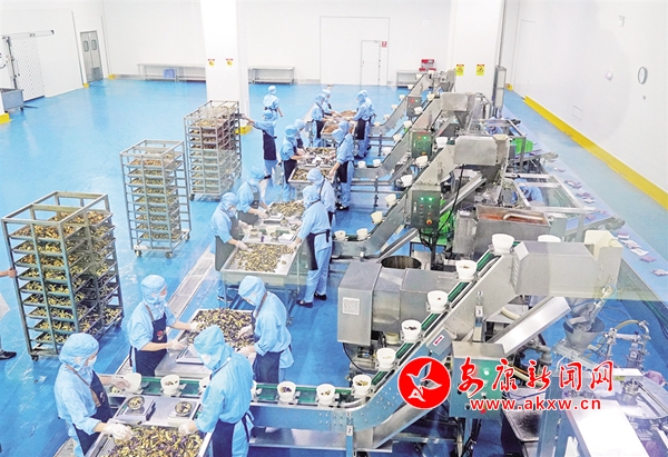 一排排工人正在娴熟地分割处理茄子、木耳等新鲜蔬菜,一条条生产线正在加速生产,热气腾腾的熟食炒制车间,阵阵香味扑鼻而来,几个流程过后,美味可口的预制菜成品就从这里源源不断地销往全国各地。