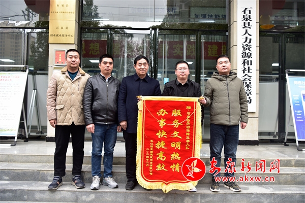 本网讯(通讯员 胡俊)2月18日,春节后上班第一天,武汉某劳务公司负责人及工人代表专程赶到石泉县,将一面印有“服务文明热情 办事快捷高效”的锦旗送到该县人社局劳动保障监察大队,对工作人员为民维权、积极保障劳动者权益的辛勤付出表示由衷的感谢和敬意。