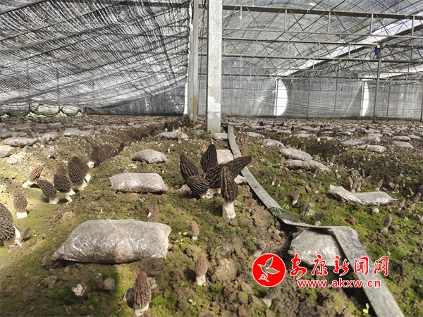 走进五爱村现代农业园,只见一个个成熟的羊肚菌“站”在菌垄里,如雨后春笋般破土而出,长势喜人的羊肚菌呈褶皱状,撑开的菌盖犹如一把小伞,也撑起了五爱村的“致富伞”。村民们提着篮子、拿着小刀,正忙着采摘成熟的羊肚菌,脸上洋溢着丰收的喜悦。“我们今年种植了8亩羊肚菌,一亩地产量大概是40多斤,鲜货每斤可卖80元,干货有黑龙江、吉林那边专门的收购商来收,一般是400到420元/斤不等,年产值在8万元左右。”种植大户黄朝斌乐呵呵地介绍道。