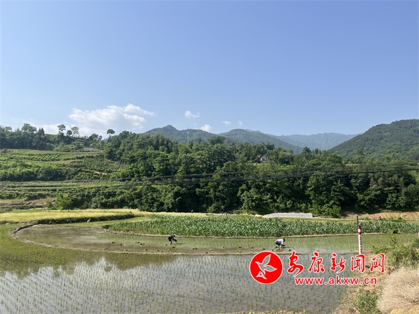 5月11日,在池河镇良田村,只见一丘丘水田像一面面镜子,在明媚的阳光下泛起耀眼的光芒。因水田田块小,不利于机械化耕作,为不让一块田撂荒,村民们趁着晴好天气采用人工插秧,确保粮食稳产增收。