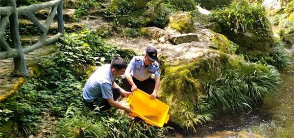 接到疑似“娃娃鱼”的动物后,民警迅速联系石泉县农业农村局协助救助。经县农业农村局工作人员比对确认,该动物正是“娃娃鱼”,又名大鲵,属国家二级重点保护野生动物。5月16日上午,民警联合县农业农村局工作人员,在一处植被资源丰富的水源地上游,将“娃娃鱼”放生回归大自然。