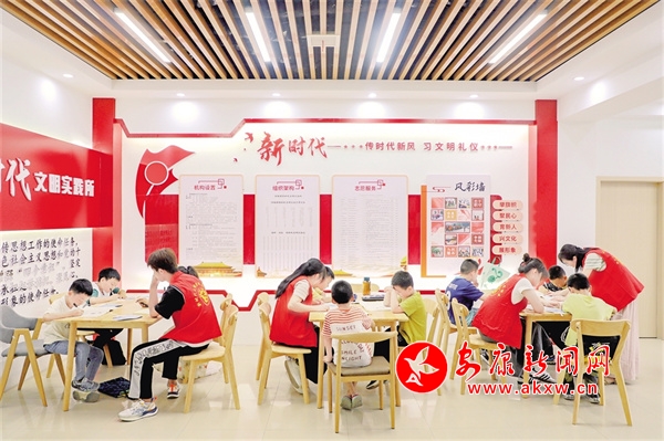 “练字要一笔一画来,慢慢写”“这道题应该这样写……”在饶峰镇新时代文明实践所中,26名儿童在大学生志愿者的耐心指导下,专心致志地写作业、练字、画画、看书,还有社区干部带领大家跳课间操来活动筋骨,让孩子们的暑假过得丰富又充实。
