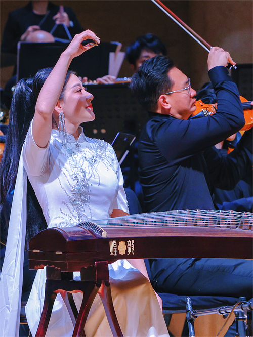 教学与生活交织的间隙,她更将古筝化作安康递给世界的一张闪亮名片。数年来,唐晓敏屡次受邀参加国内外各种文化交流活动。从韩国、泰国摘得国际金奖,到维也纳金色大厅新年交响音乐会,再到北京中山堂《瑶族舞曲》领奏、央视建党百年舞台……她的筝声跨越山海。2023年,作为“中阿国际文化大使”及中华筝乐团代表,她在阿联酋奏响友谊乐章;今年的戛纳国际电影节“中国之夜”上,她以古筝向世界诠释中华魅力。