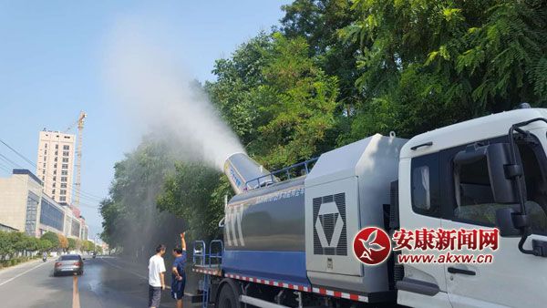 安康新闻网讯(通讯员 谭渊)8月3日上午,在石泉炎热干燥的环城路上,一辆尾部装有巨大“炮筒”的卡车沿路喷水洒雾,一路走过路面潮湿,空气清凉,沿途飘洒的水……