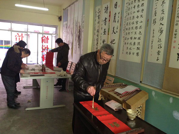 石泉书法家为社区居民义写春联
