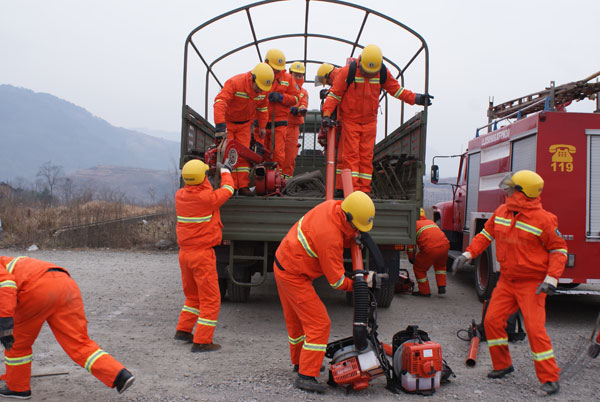 接到火情报告,扑火队员迅速登上演练车辆 扑火队员各持灭火器具赶赴火场安康新闻网讯(通讯员 宋世兵)1月27日,石泉县森林防火指挥部组织林业、消防等60余名扑火……