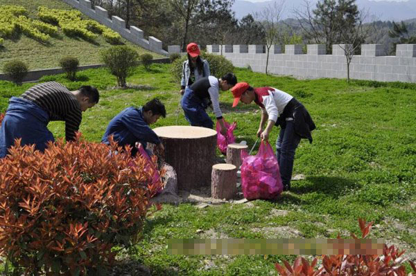 石泉志愿者清明前夕在烈士陵园开展环保活动