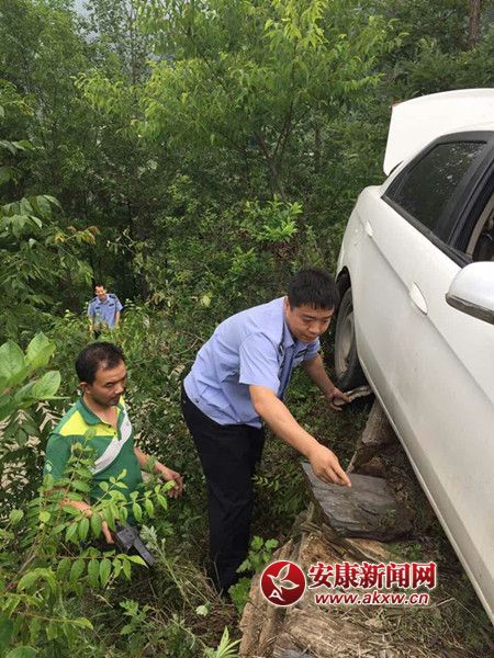 新手司机开车紧张致车掉下路沿 警民合力将车抬起